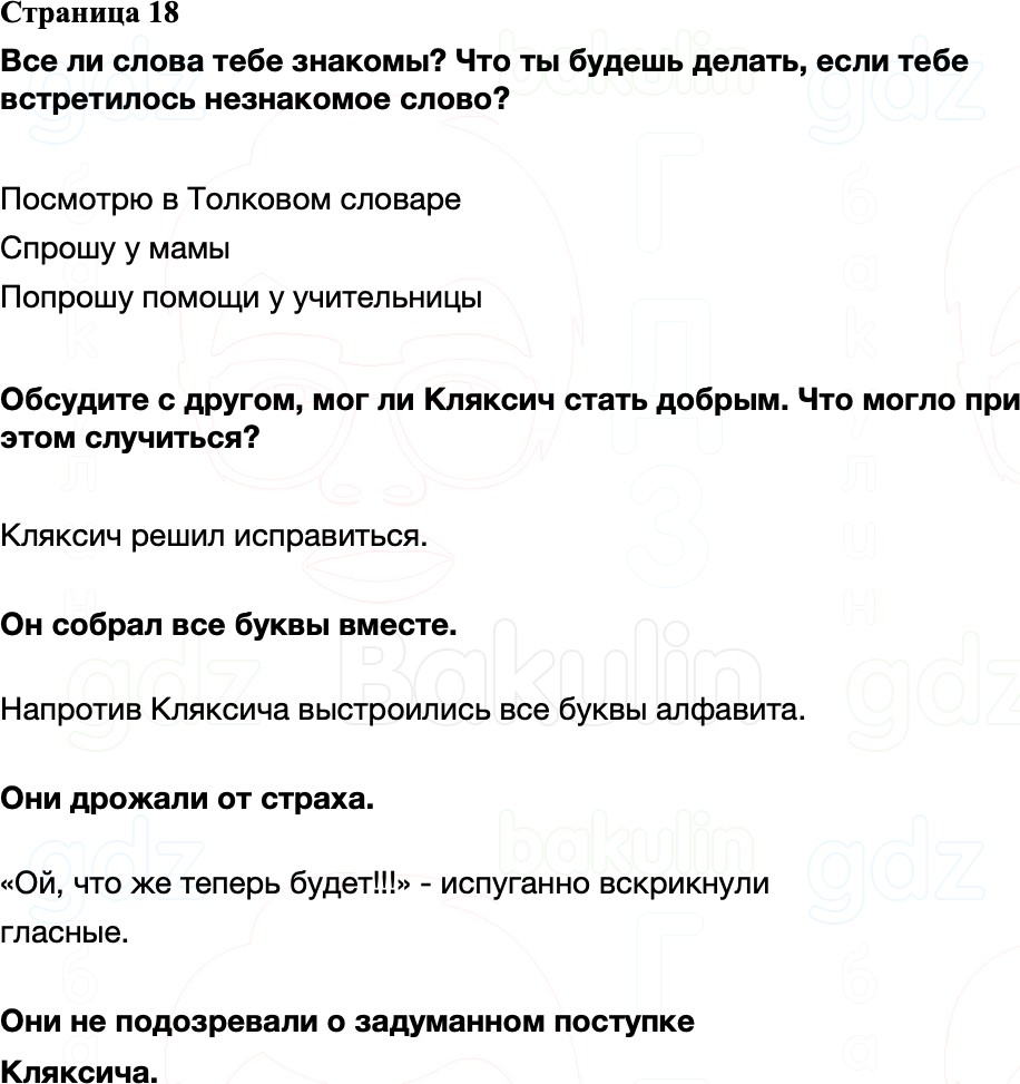 Правильный ответ к заданию ГДЗ Рабочая тетрадь литературное чтение 1 класс Бойкина, Виноградская к учебнику Климанова, Горецкий Школа России
