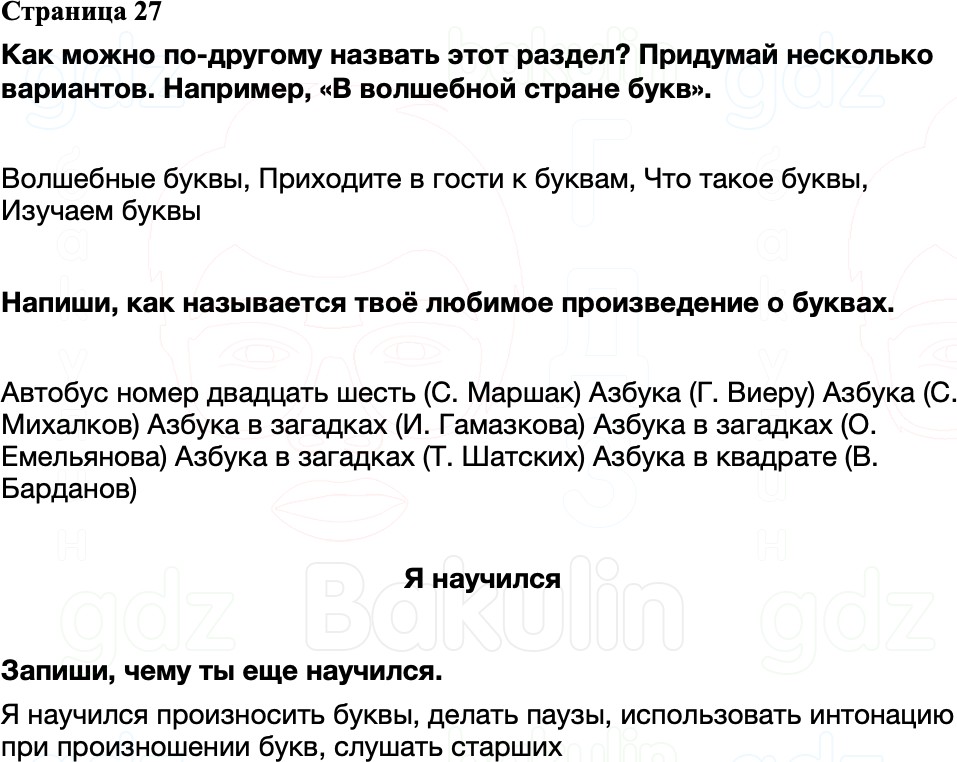 Правильный ответ к заданию ГДЗ Рабочая тетрадь литературное чтение 1 класс Бойкина, Виноградская к учебнику Климанова, Горецкий Школа России