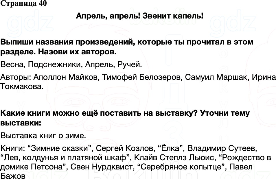 Правильный ответ к заданию ГДЗ Рабочая тетрадь литературное чтение 1 класс Бойкина, Виноградская к учебнику Климанова, Горецкий Школа России