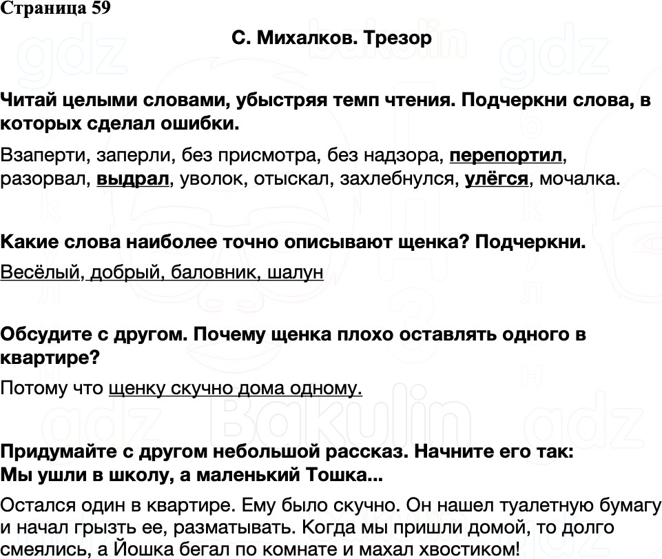 Правильный ответ к заданию ГДЗ Рабочая тетрадь литературное чтение 1 класс Бойкина, Виноградская к учебнику Климанова, Горецкий Школа России