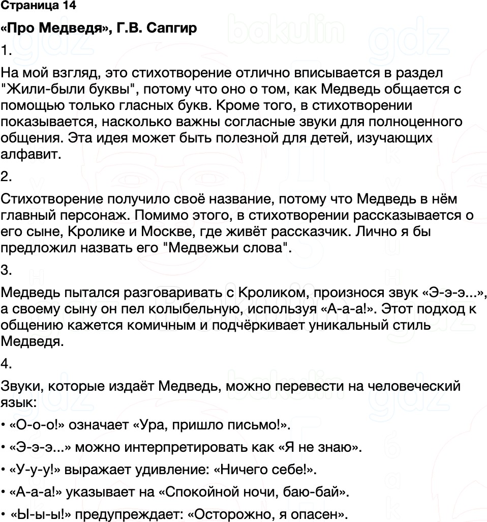 Правильный ответ к заданию ГДЗ по литературному чтению 1 класс Климанова, Горецкий, Голованова Часть 1, номер 14 бесплатно онлайн