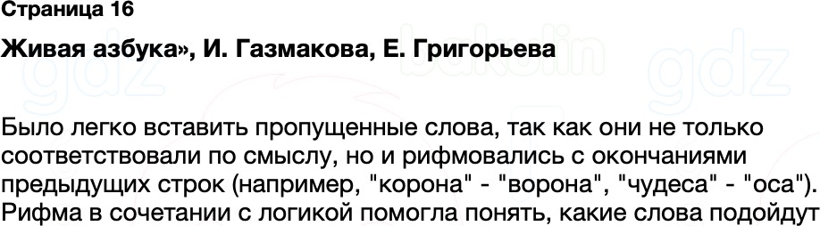 Правильный ответ к заданию ГДЗ по литературному чтению 1 класс Климанова, Горецкий, Голованова Часть 1, номер 16 бесплатно онлайн