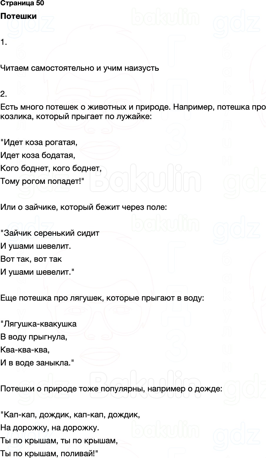 Правильный ответ к заданию ГДЗ по литературному чтению 1 класс Климанова, Горецкий, Голованова Часть 1, номер 50 бесплатно онлайн