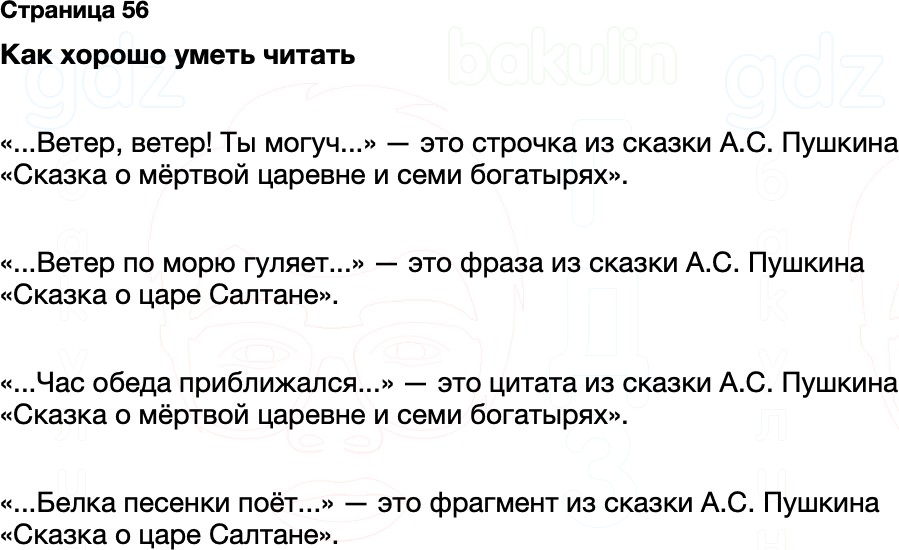 Правильный ответ к заданию ГДЗ по литературному чтению 1 класс Климанова, Горецкий, Голованова Часть 1, номер 56 бесплатно онлайн