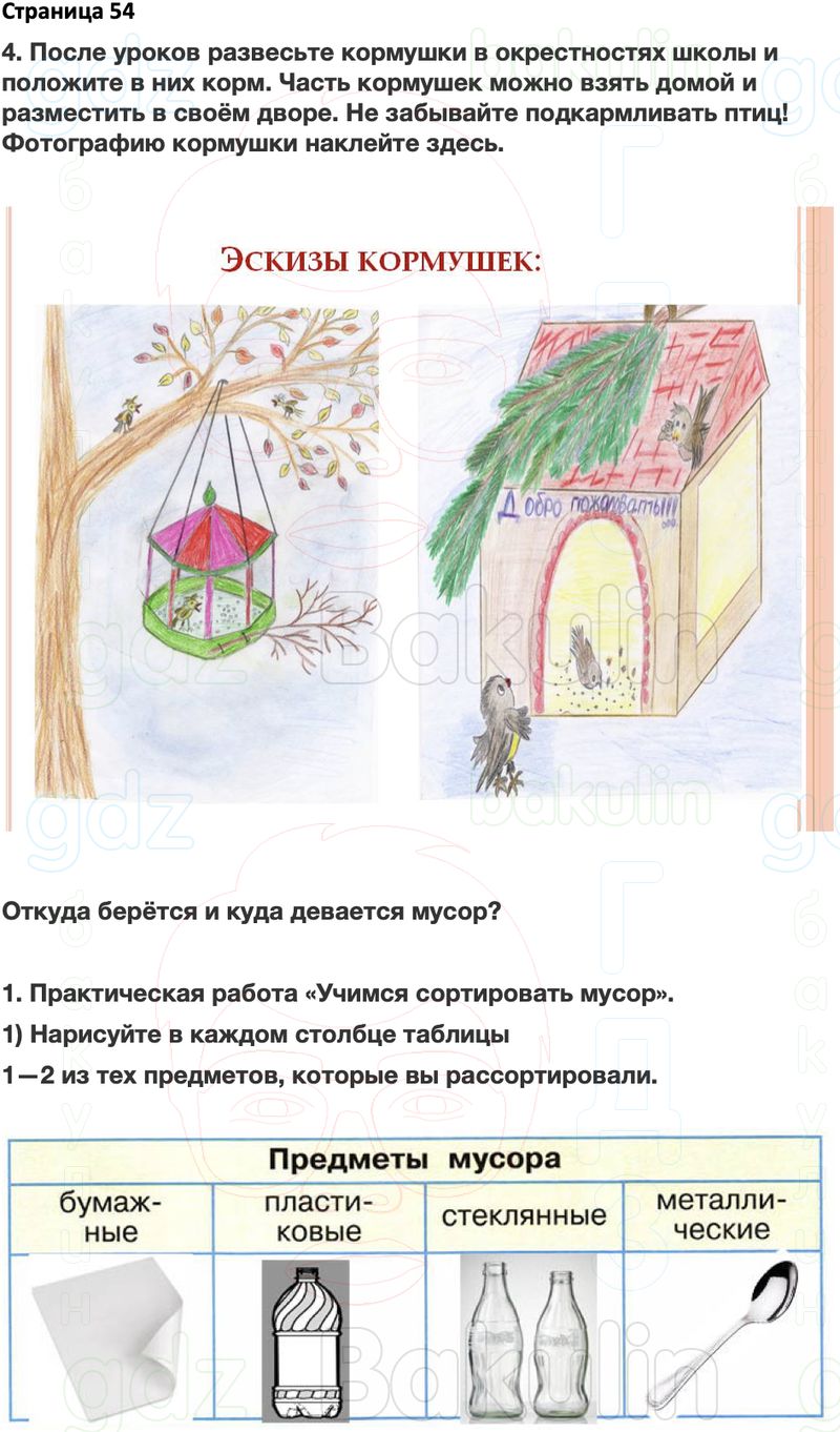 - После уроков развесьте кормушки в окрестностях школы и положите в них корм. Часть кормушек можно взять домой и разместить в своём дворе. Не забывайте подкармливать птиц! Фотографию кормушки наклейте здесь.