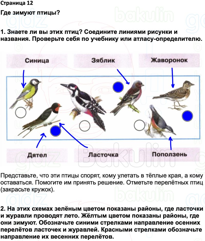 1. Знаете ли вы этих птиц? Соедините линиями рисунки и названия. Проверьте себя по учебнику или атласу-определителю.