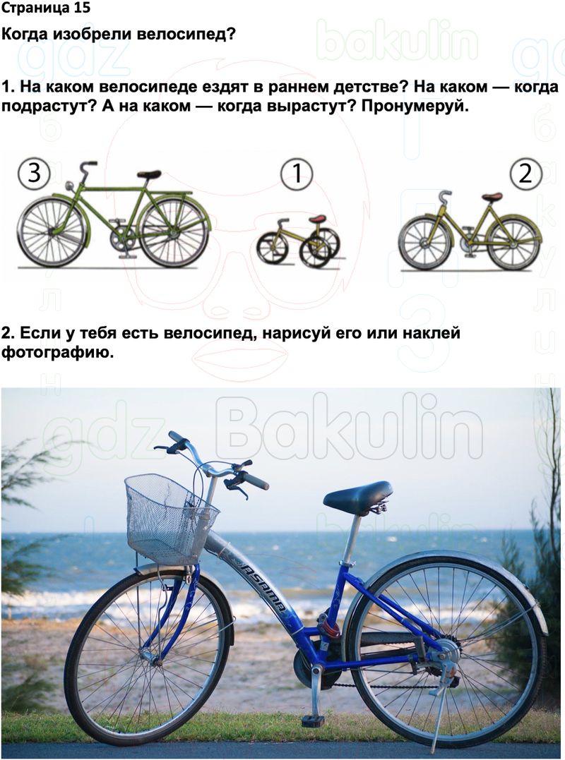 1. На каком велосипеде ездят в раннем детстве? На каком — когда подрастут? А на каком — когда вырастут? Пронумеруй. 2. Закрась продолжение каждого правила в цвет его начала. Попроси соседа по парте проверить тебя.