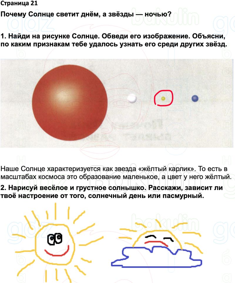 1. Найди на рисунке Солнце. Обведи его изображение. Объясни, по каким признакам тебе удалось узнать его среди других звёзд.