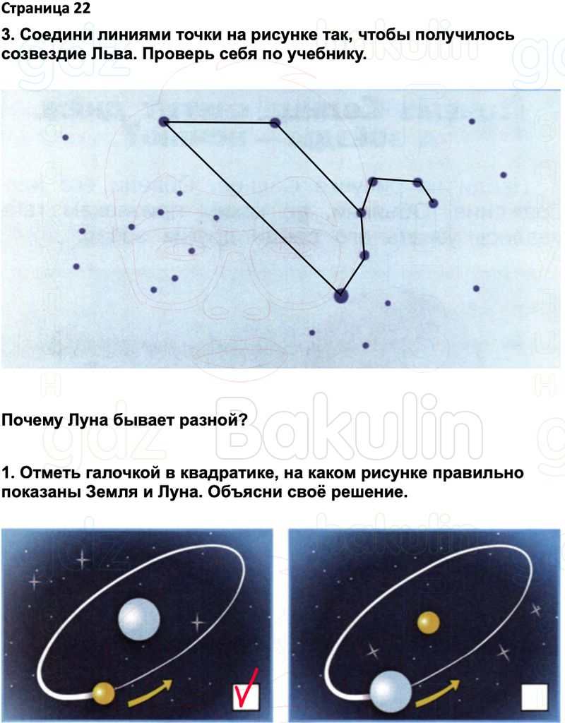 3. Соедини линиями точки на рисунке так, чтобы получилось созвездие Льва. Проверь себя по учебнику.