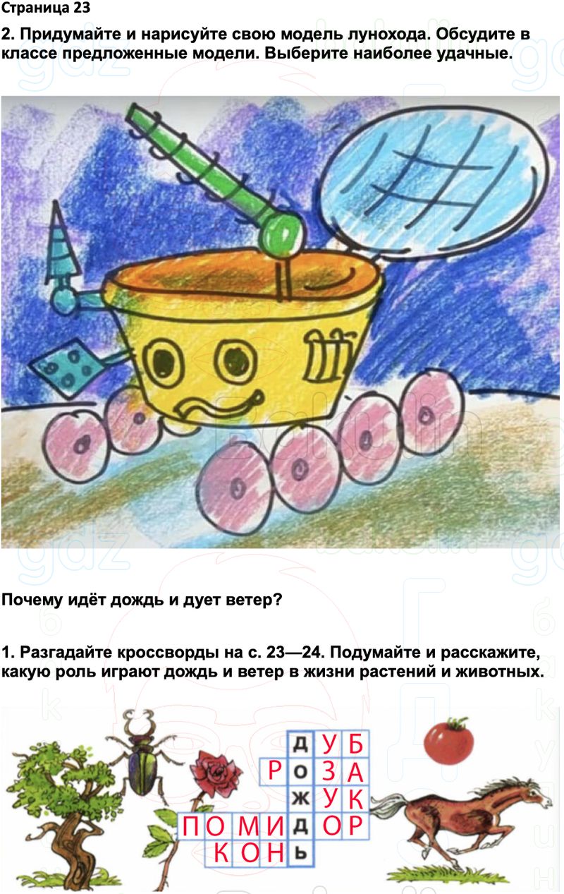 1. Разгадайте кроссворды на с. 23—24. Подумайте и расскажите, какую роль играют дождь и ветер в жизни растений и животных.