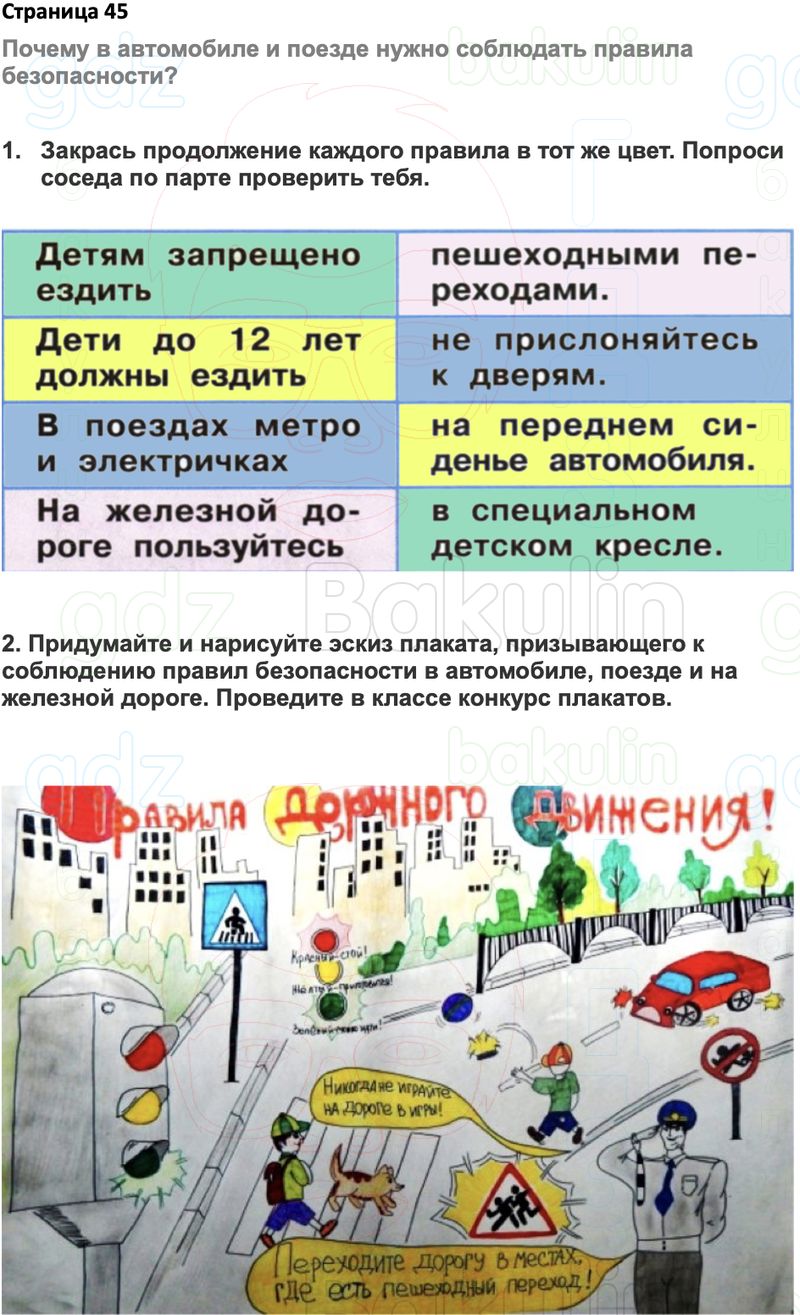 2. Придумайте и нарисуйте эскиз плаката, призывающего к соблюдению правил безопасности в автомобиле, поезде и на железной дороге. Проведите в классе конкурс плакатов.
