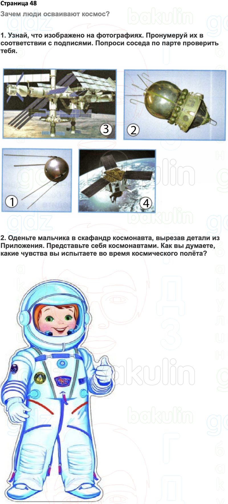 2. Оденьте мальчика в скафандр космонавта, вырезав детали из Приложения. Представьте себя космонавтами. Как вы думаете, какие чувства вы испытаете во время космического полёта?