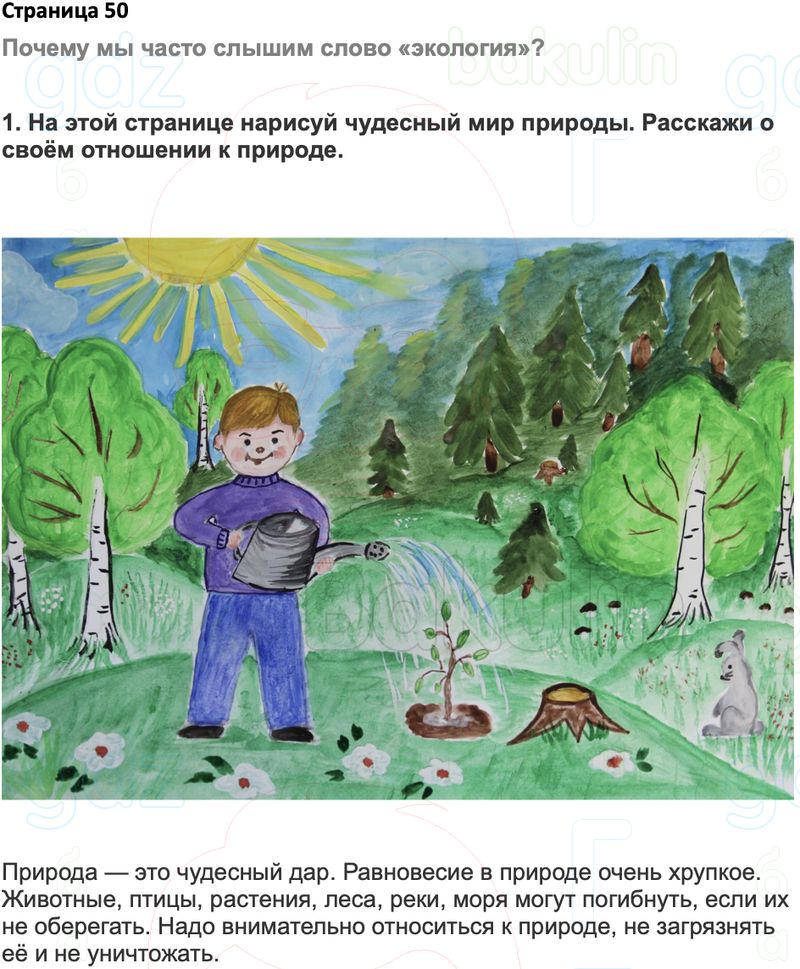 1. На этой странице нарисуй чудесный мир природы. Расскажи о своём отношении к природе.