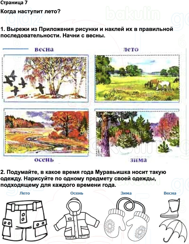 1. Вырежи из Приложения рисунки и наклей их в правильной последовательности. Начни с весны.