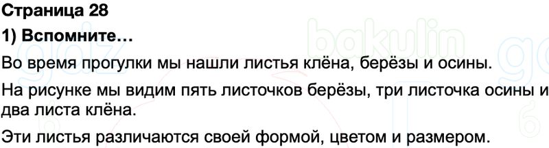 Правильный ответ к заданию ГДЗ окружающий мир 1 класс Плешаков Школа России Часть 1 Страница, номер 28 бесплатно онлайн