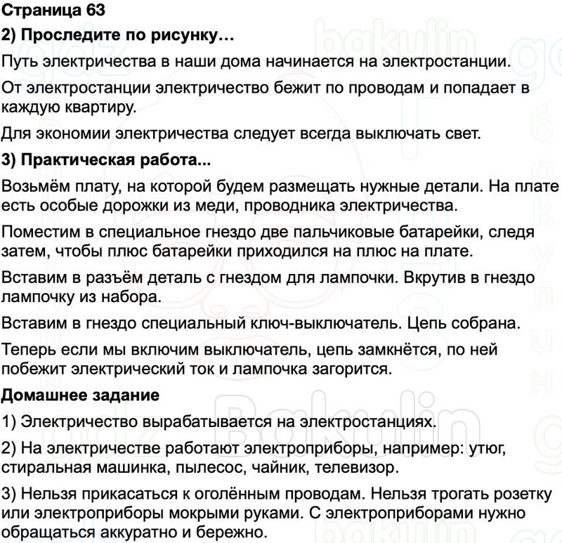 Правильный ответ к заданию ГДЗ окружающий мир 1 класс Плешаков Школа России Часть 1 Страница, номер 63 бесплатно онлайн