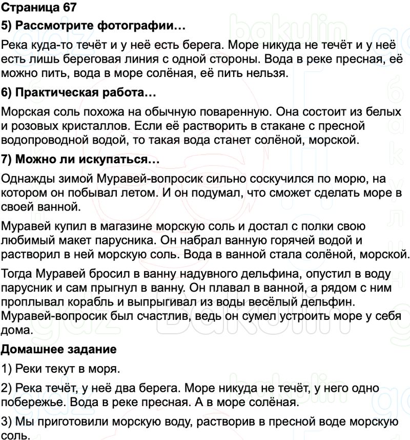 Правильный ответ к заданию ГДЗ окружающий мир 1 класс Плешаков Школа России Часть 1 Страница, номер 67 бесплатно онлайн