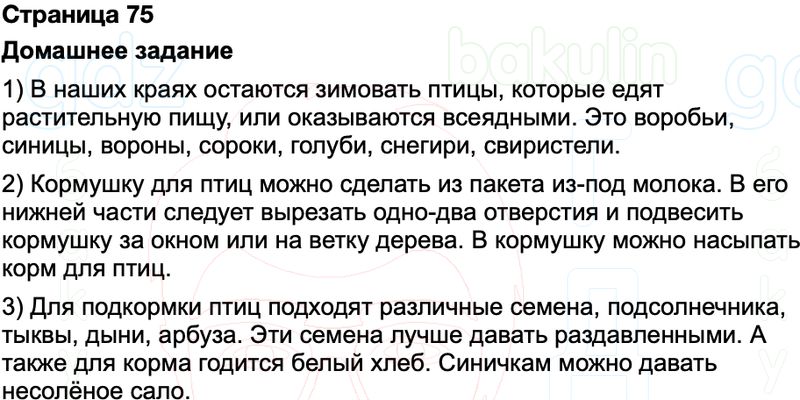 Правильный ответ к заданию ГДЗ окружающий мир 1 класс Плешаков Школа России Часть 1 Страница, номер 75 бесплатно онлайн