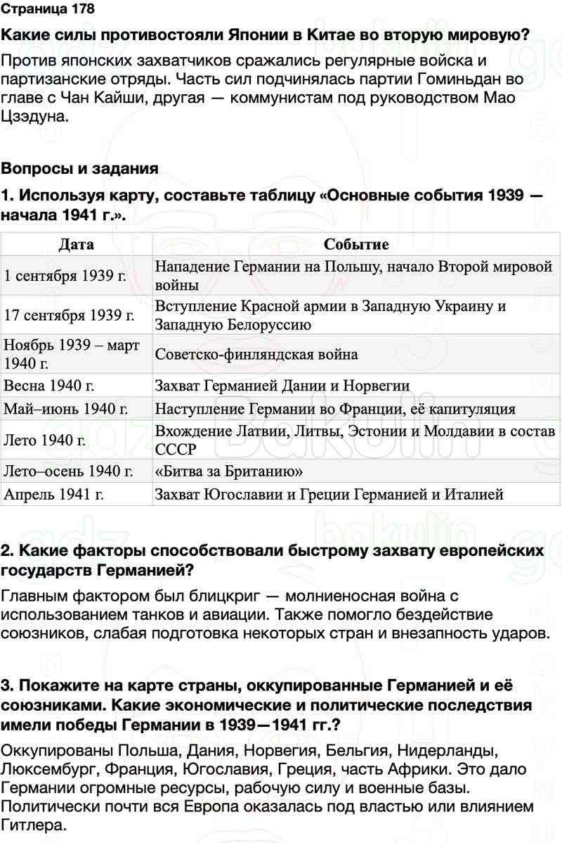 1. Используя карту, составьте таблицу «Основные события 1939 — начала 1941 г.».