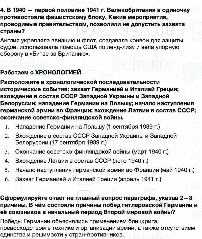 4. В 1940 — первой половине 1941 г. Великобритания в одиночку противостояла фашистскому блоку. Какие мероприятия, проводимые правительством, позволили не допустить захвата страны?