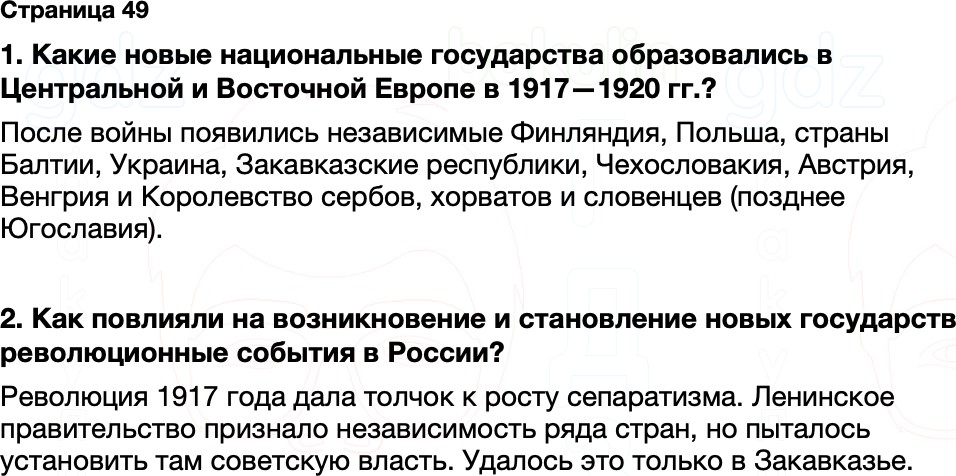 1. Какие новые национальные государства образовались в Центральной и Восточной Европе в 1917—1920 гг.?