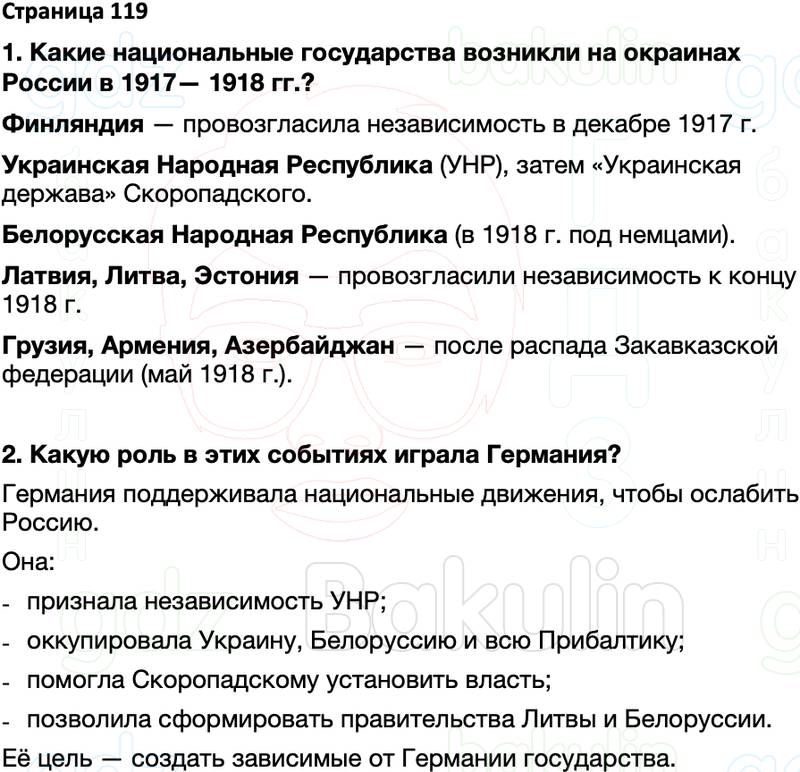 1. Какие национальные государства возникли на окраинах России в 1917— 1918 гг.?