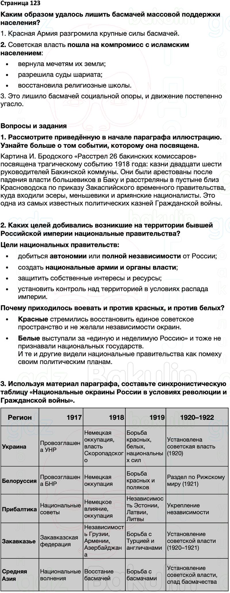 3. Используя материал параграфа, составьте синхронистическую таблицу «Национальные окраины России в условиях революции и Гражданской войны».