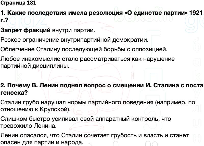 1. Какие последствия имела резолюция «О единстве партии» 1921 г.?
