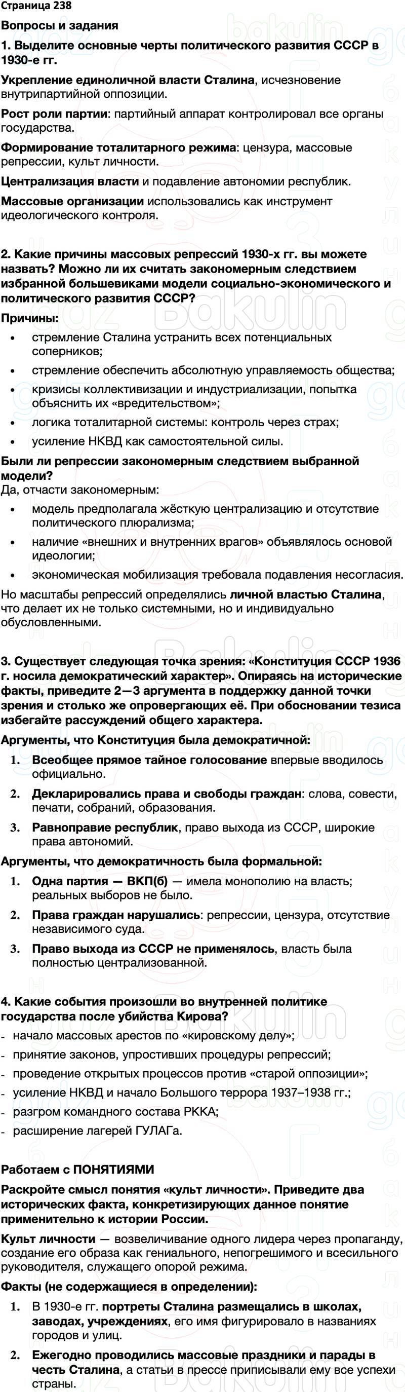 1. Выделите основные черты политического развития СССР в 1930-е гг.