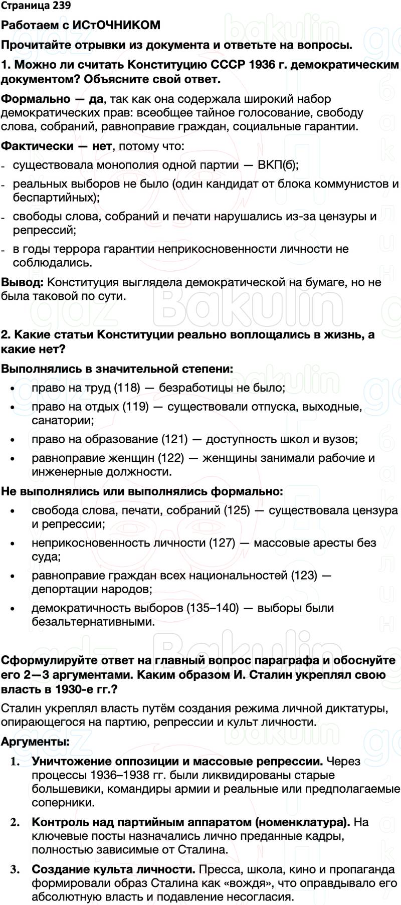 1. Можно ли считать Конституцию СССР 1936 г. демократическим документом? Объясните свой ответ.
