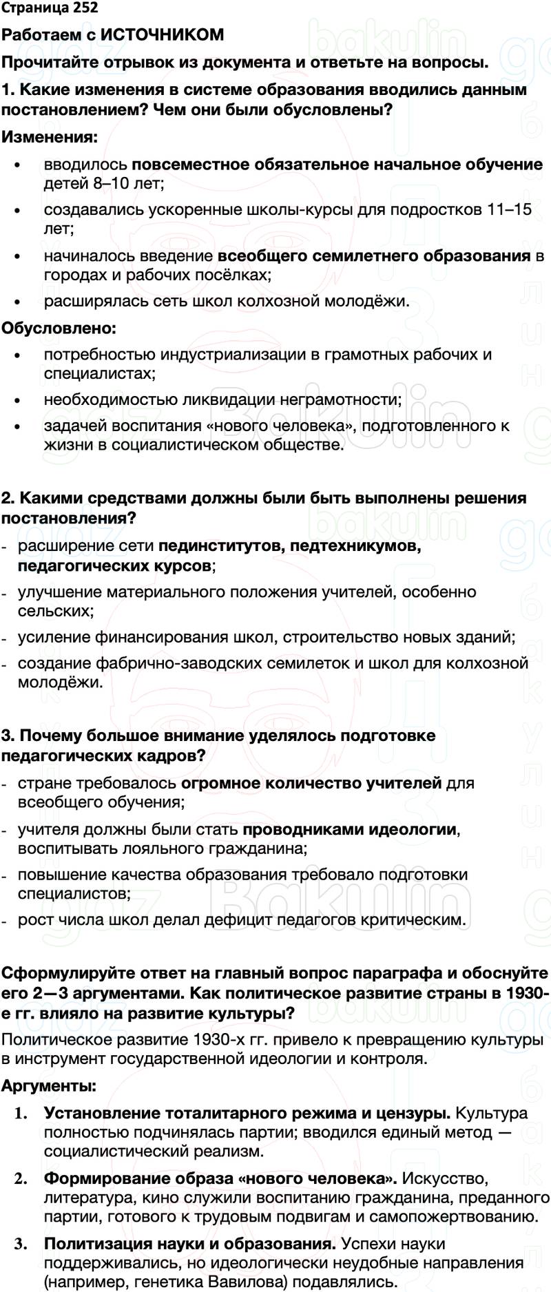 Сформулируйте ответ на главный вопрос параграфа и обоснуйте его 2—3 аргументами. Как политическое развитие страны в 1930-е гг. влияло на развитие культуры?