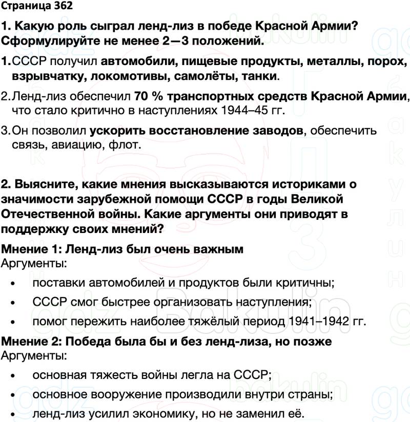 1. Какую роль сыграл ленд-лиз в победе Красной Армии? Сформулируйте не менее 2—3 положений.