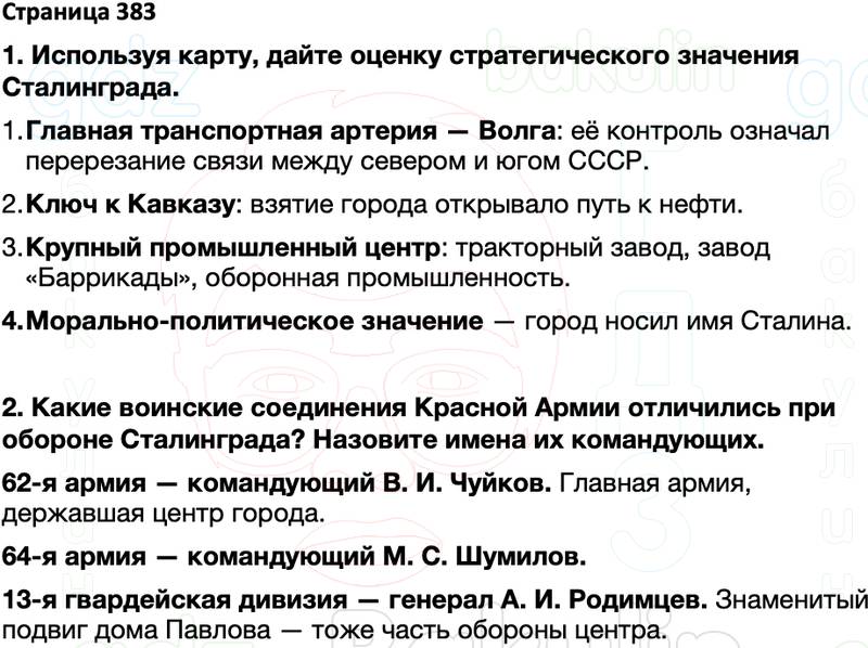 1. Используя карту, дайте оценку стратегического значения Сталинграда.