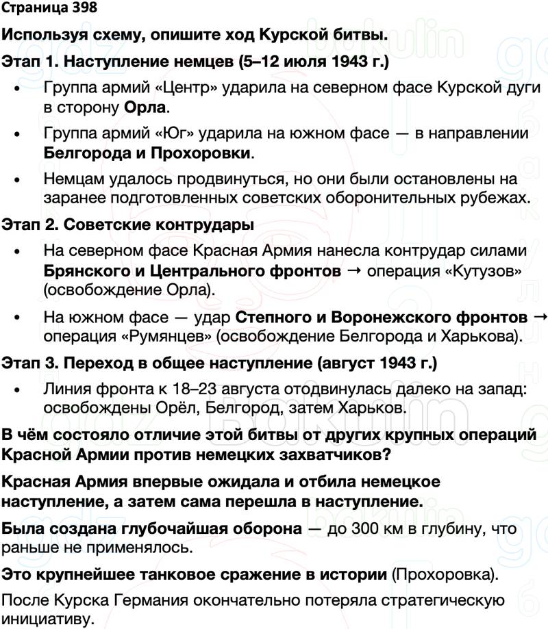 Используя схему, опишите ход Курской битвы. В чём состояло отличие этой битвы от других крупных операций Красной Армии против немецких захватчиков?