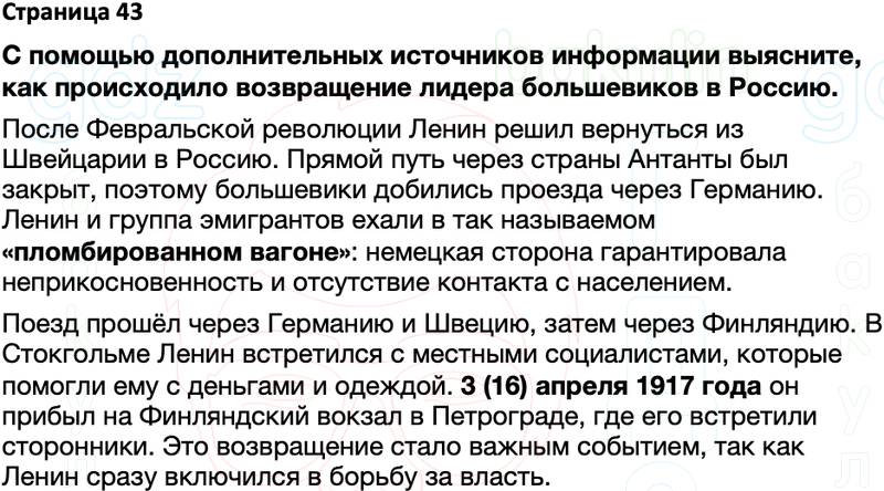 С помощью дополнительных источников информации выясните, как происходило возвращение лидера большевиков в Россию.