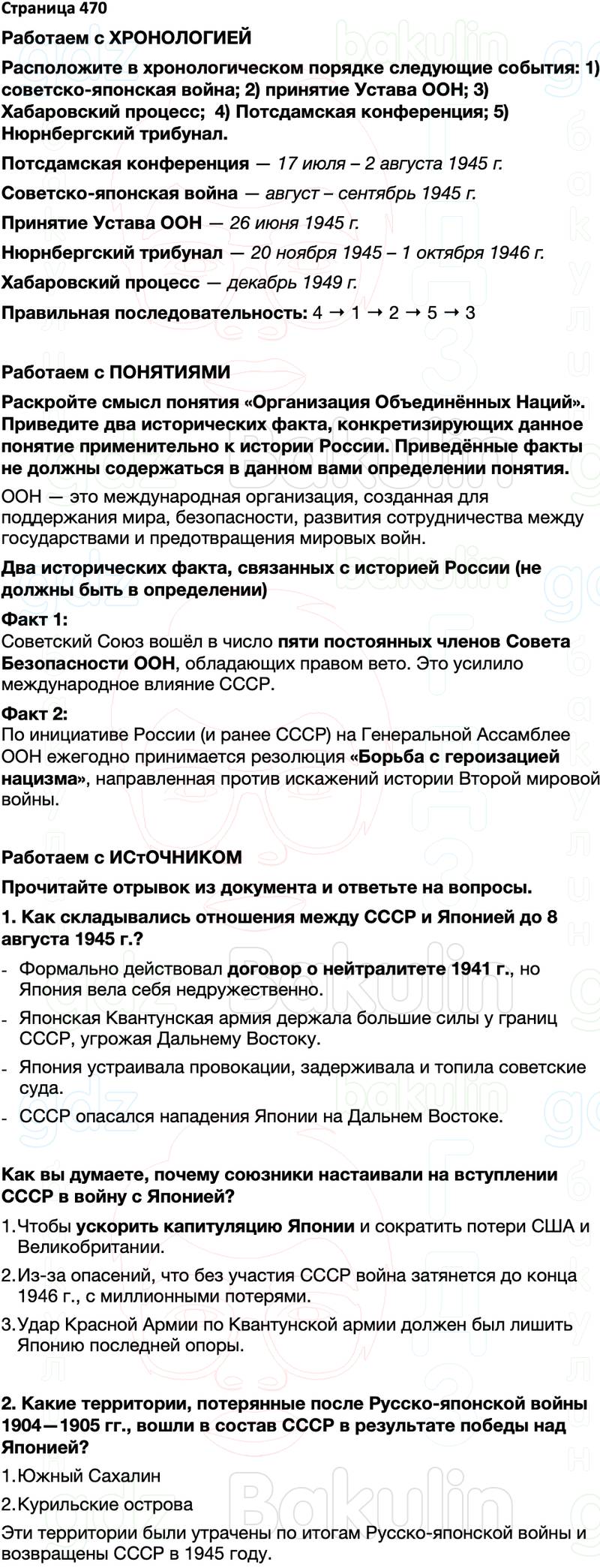 1. Как складывались отношения между СССР и Японией до 8 августа 1945 г.? Как вы думаете, почему союзники настаивали на вступлении СССР в войну с Японией?