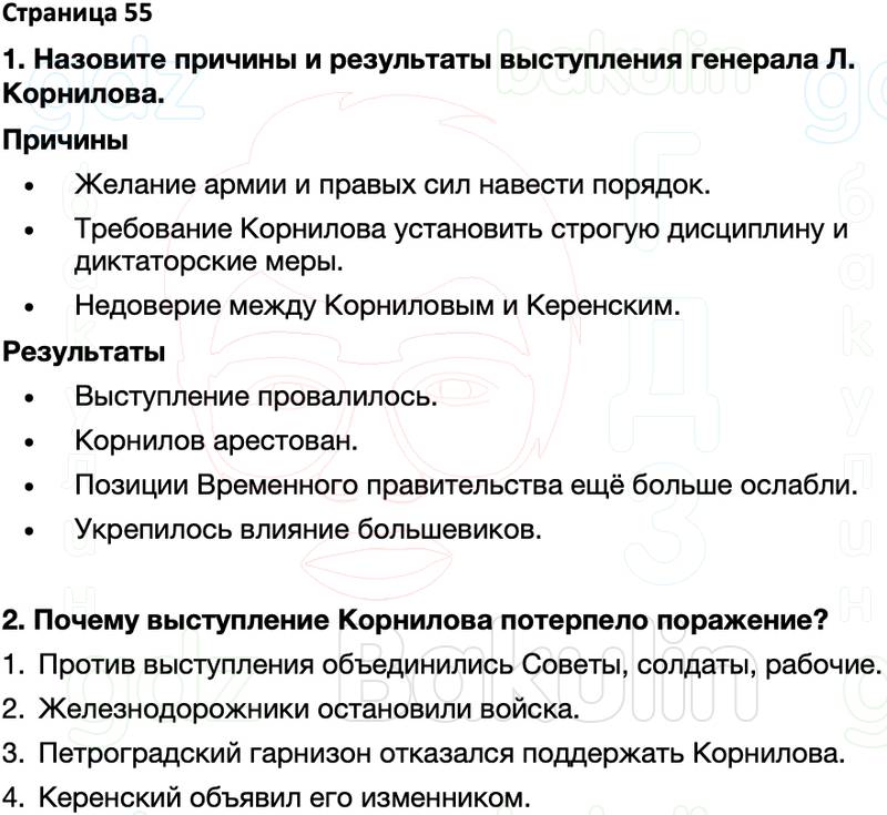 1. Назовите причины и результаты выступления генерала Л. Корнилова.