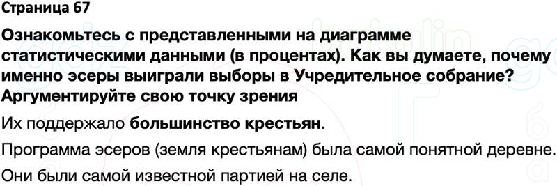 Ознакомьтесь с представленными на диаграмме статистическими данными (в процентах). Как вы думаете, почему именно эсеры выиграли выборы в Учредительное собрание? Аргументируйте свою точку зрения