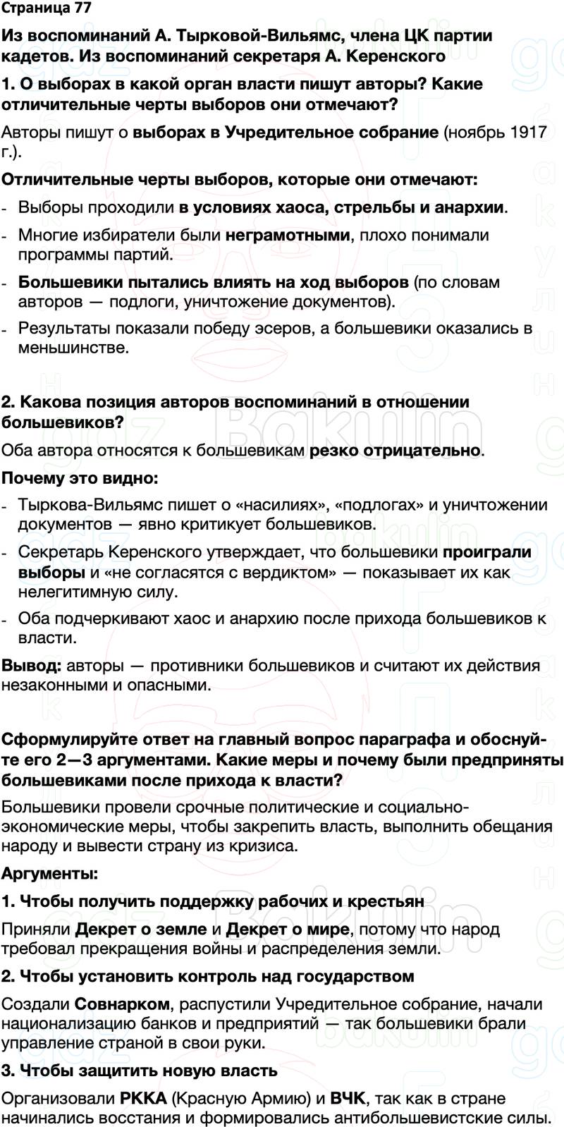 Сформулируйте ответ на главный вопрос параграфа и обоснуй- те его 2—3 аргументами. Какие меры и почему были предприняты большевиками после прихода к власти?