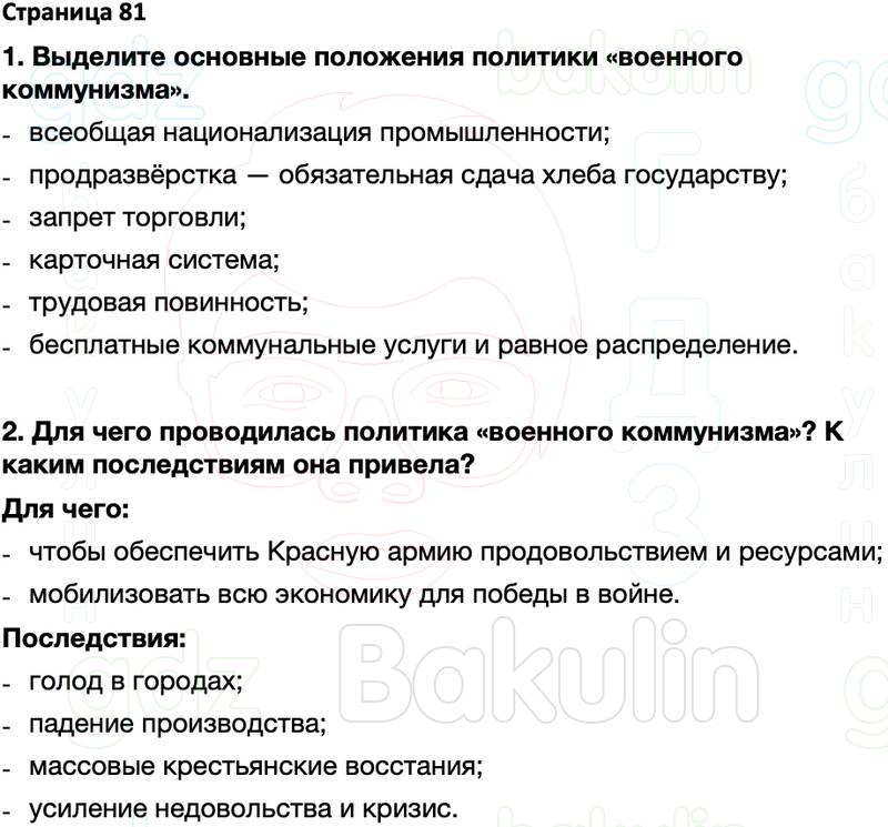 2. Для чего проводилась политика «военного коммунизма»? К каким последствиям она привела?