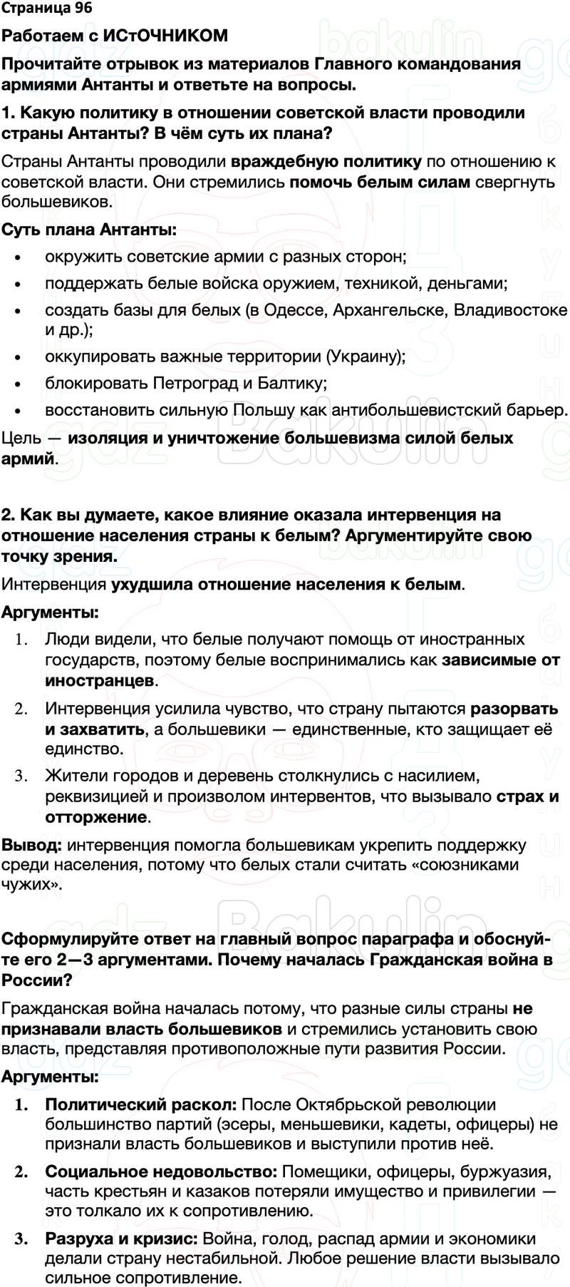 Сформулируйте ответ на главный вопрос параграфа и обоснуй- те его 2—3 аргументами. Почему началась Гражданская война в России?