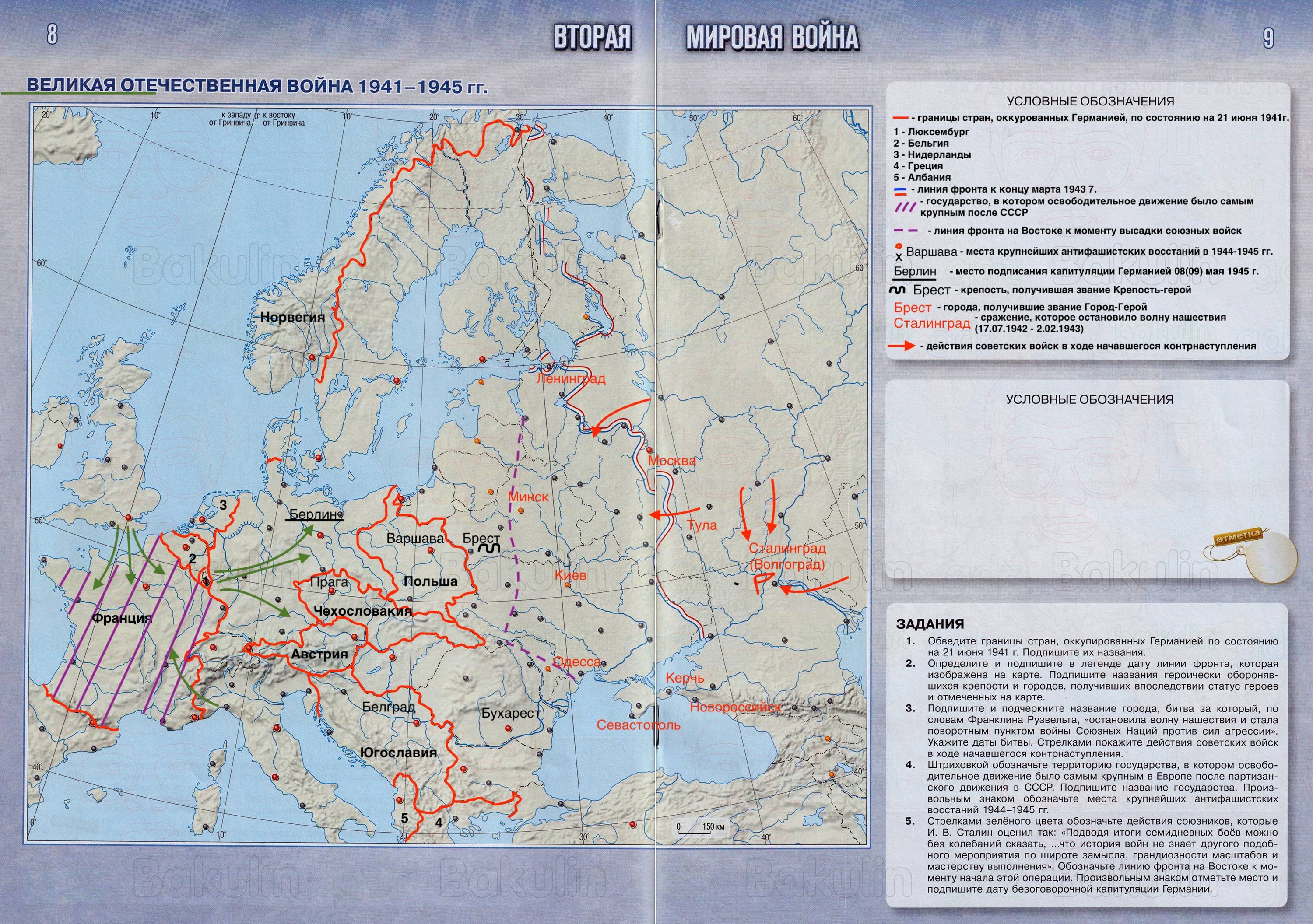 Страница 8-9 Контурная карта Вторая мировая война. ВЕЛИКАЯ ОТЕЧЕСТВЕННАЯ ВОЙНА 1941-1945 гг.