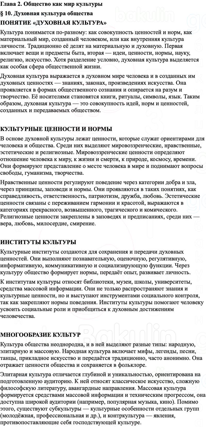 Краткое содержание пересказ Параграф 10. Духовная культура общества