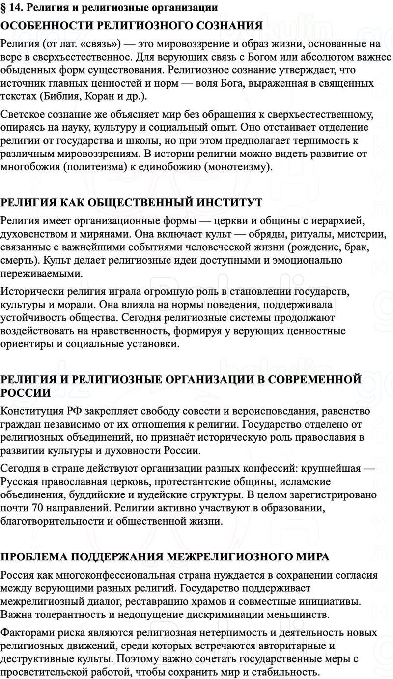 Краткое содержание пересказ Параграф 14. Религия и религиозные организации
