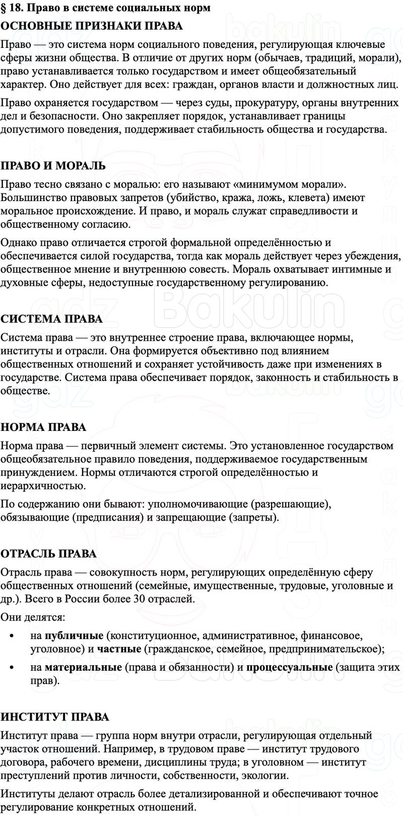 Краткое содержание пересказ Параграф 18. Право в системе социальных норм