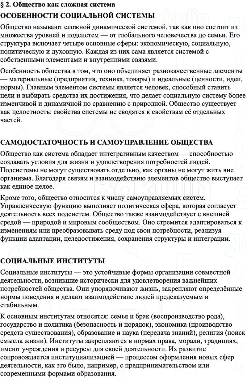 Краткое содержание пересказ Параграф 2. Общество как сложная система