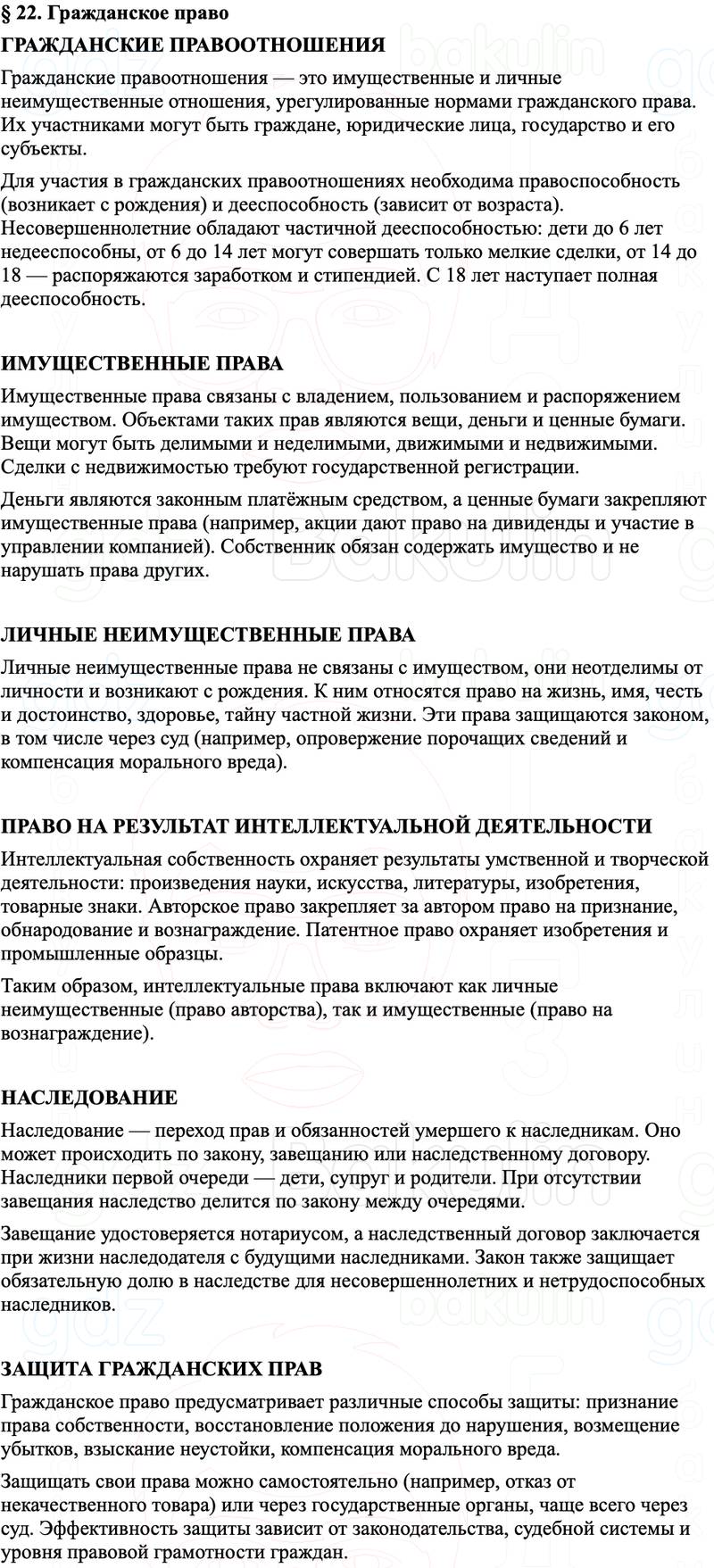 Краткое содержание пересказ Параграф 22. Гражданское право