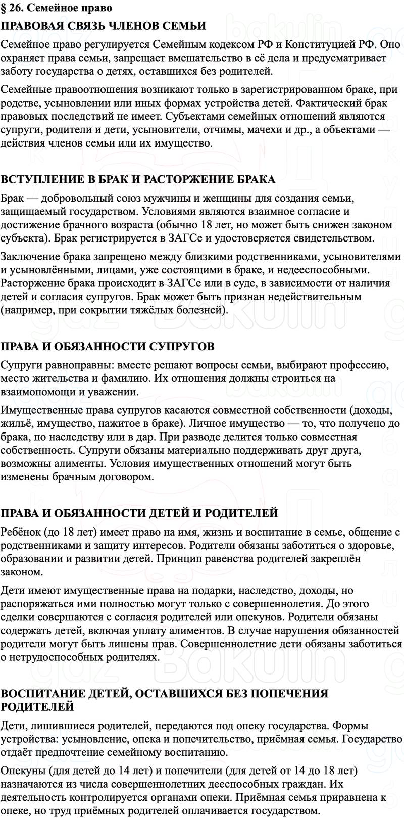 Краткое содержание пересказ Параграф 26. Семейное право