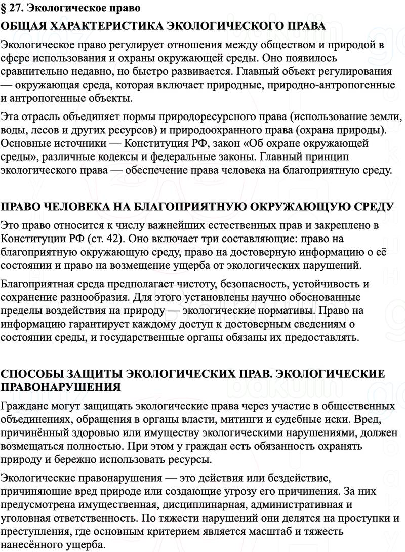 Краткое содержание пересказ Параграф 27. Экологическое право