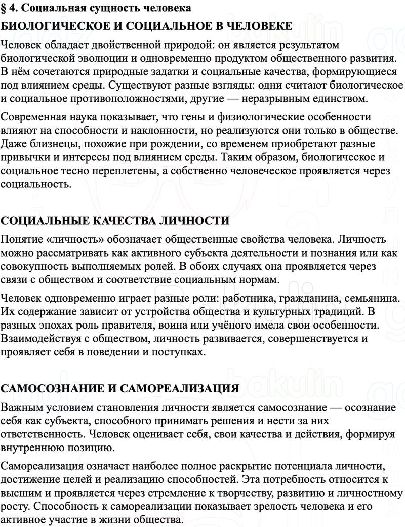 Краткое содержание пересказ Параграф 4. Социальная сущность человека
